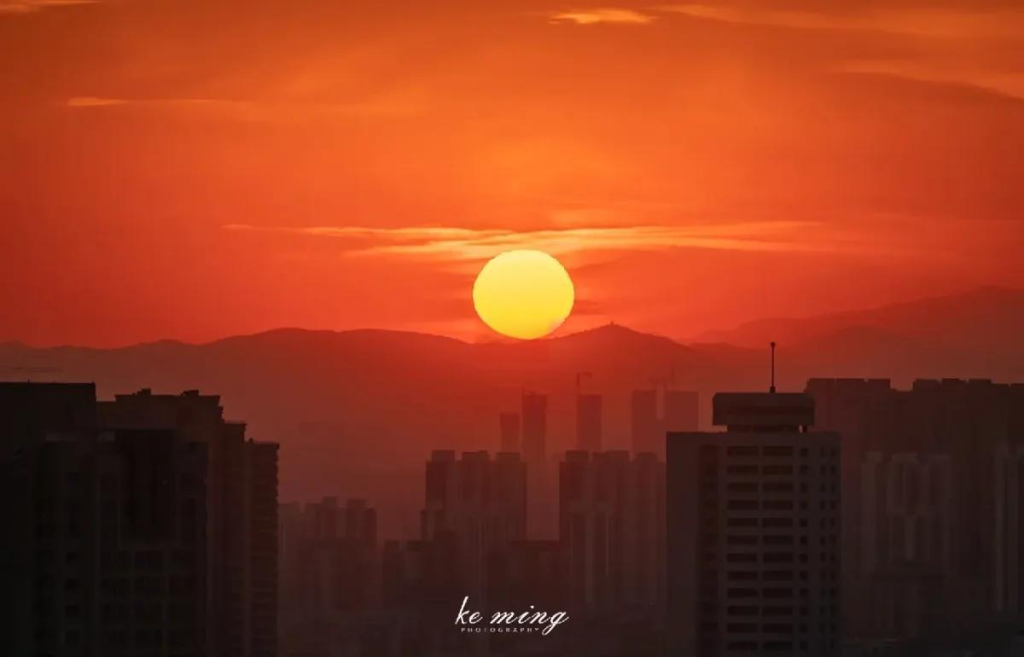 在西方的天际,正在云海中下沉的夕阳仿佛被融化了,太阳的血在云海和天空中弥漫开来,映现出一大片壮丽的血红。